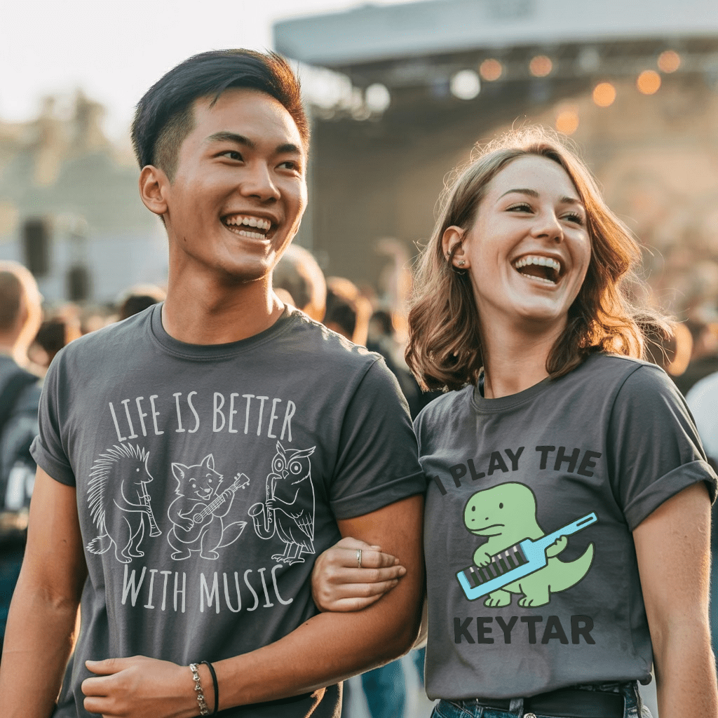 Whether jamming out, hitting a concert, or vibing to your favorite playlist — our unique tees bring the music with you.