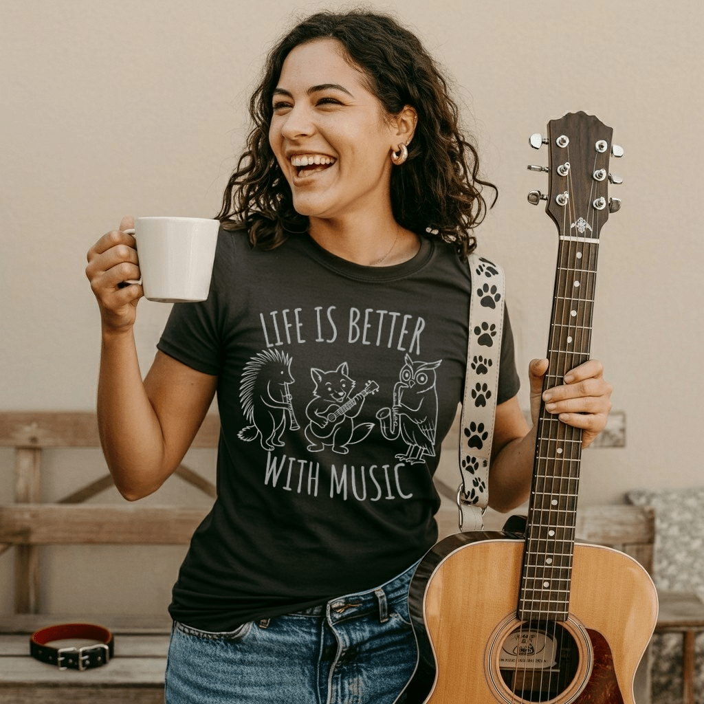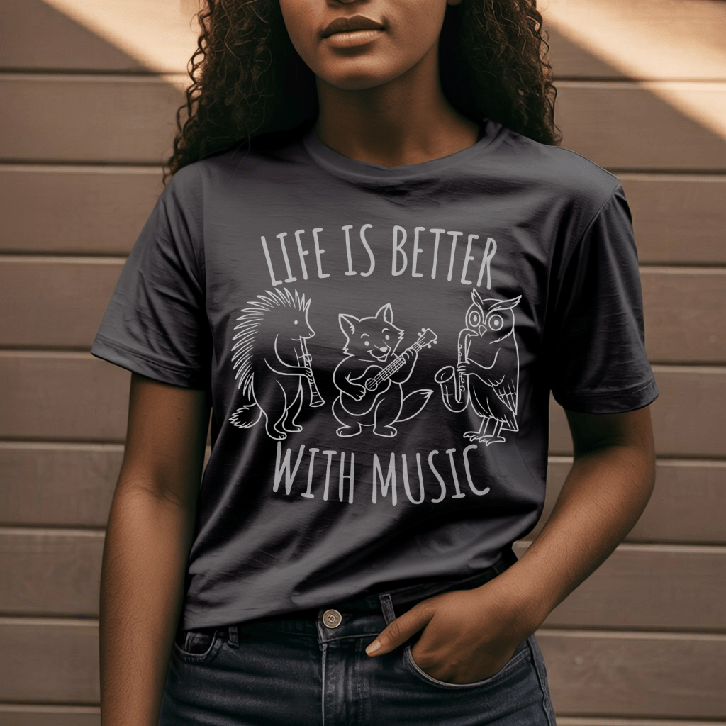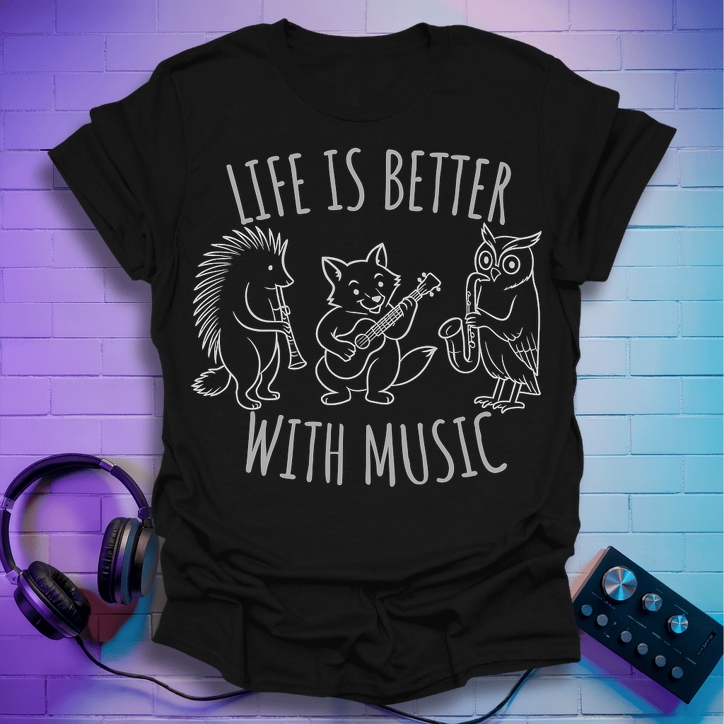 Life Is Better With Music – Fox, Owl & Porcupine T-Shirt
