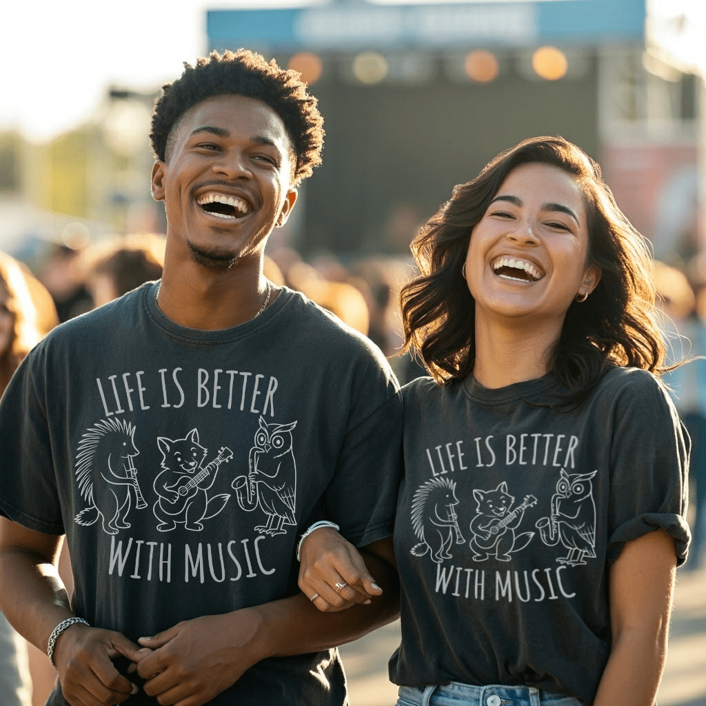 Whether jamming out, hitting a concert, or vibing to your favorite playlist — our unique tees bring the music with you.