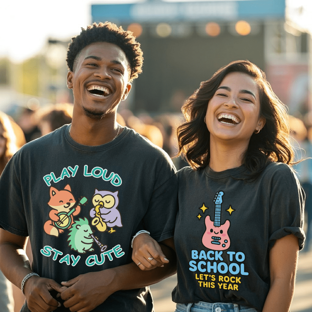 Whether jamming out, hitting a concert, or vibing to your favorite playlist — our unique tees bring the music with you.