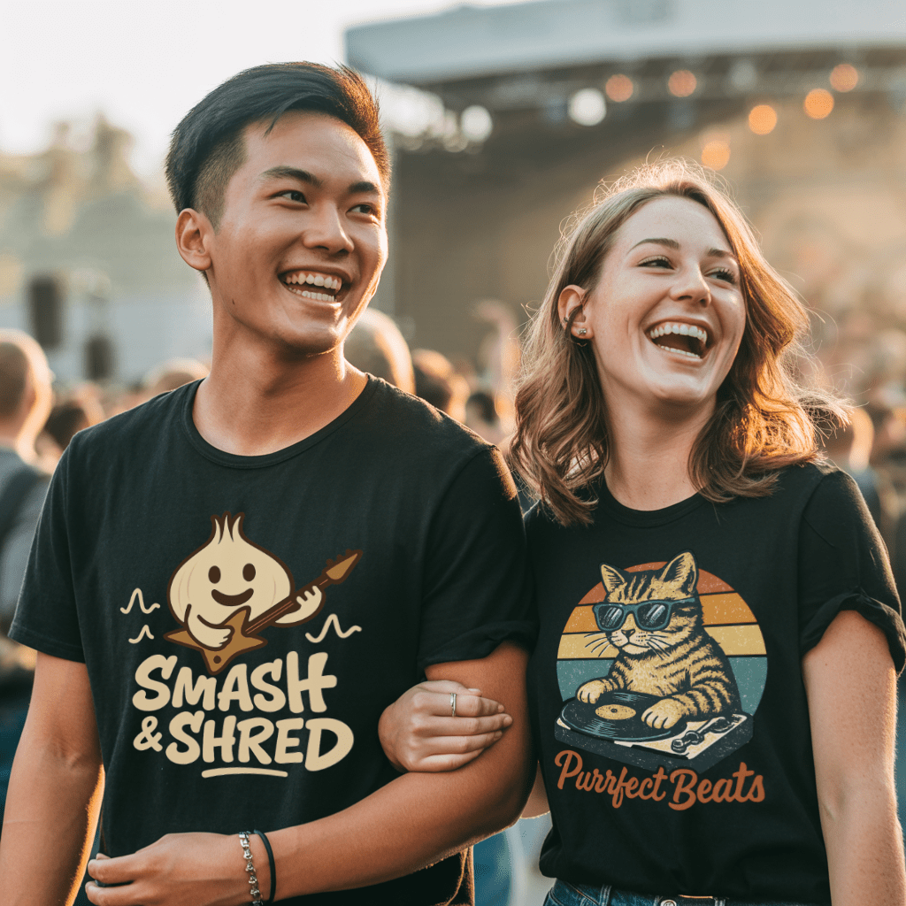 Whether jamming out, hitting a concert, or vibing to your favorite playlist — our unique tees bring the music with you.