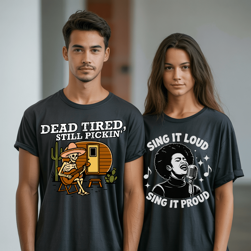 Whether jamming out, hitting a concert, or vibing to your favorite playlist — our unique tees bring the music with you.
