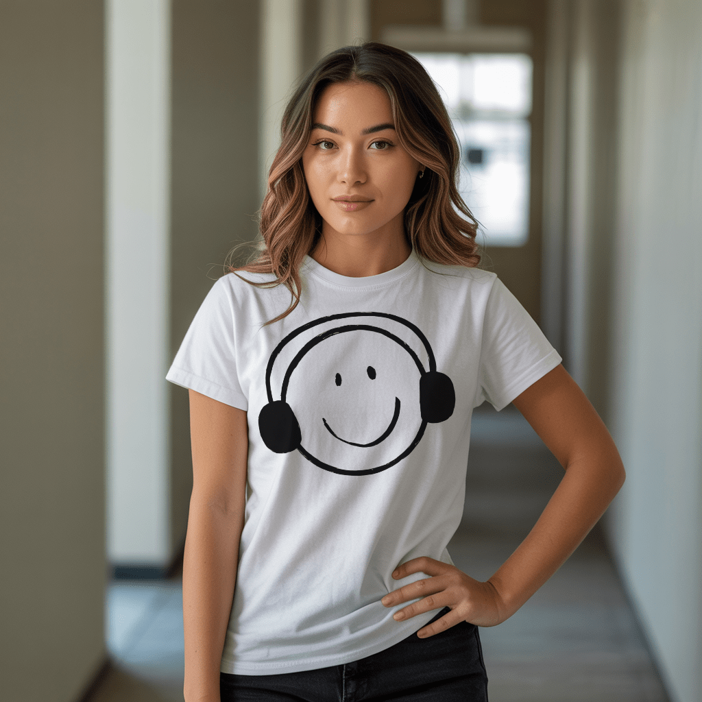 Smiley Headphone Face T-Shirt